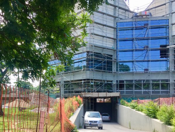 Radovi su bili u toku, doduše ne baš nekim užurbanim tempom. Što se unutrašnjosti zgrade tiče – nismo uspeli da provirimo, ali radovi na fasadi još nisu gotovi.
