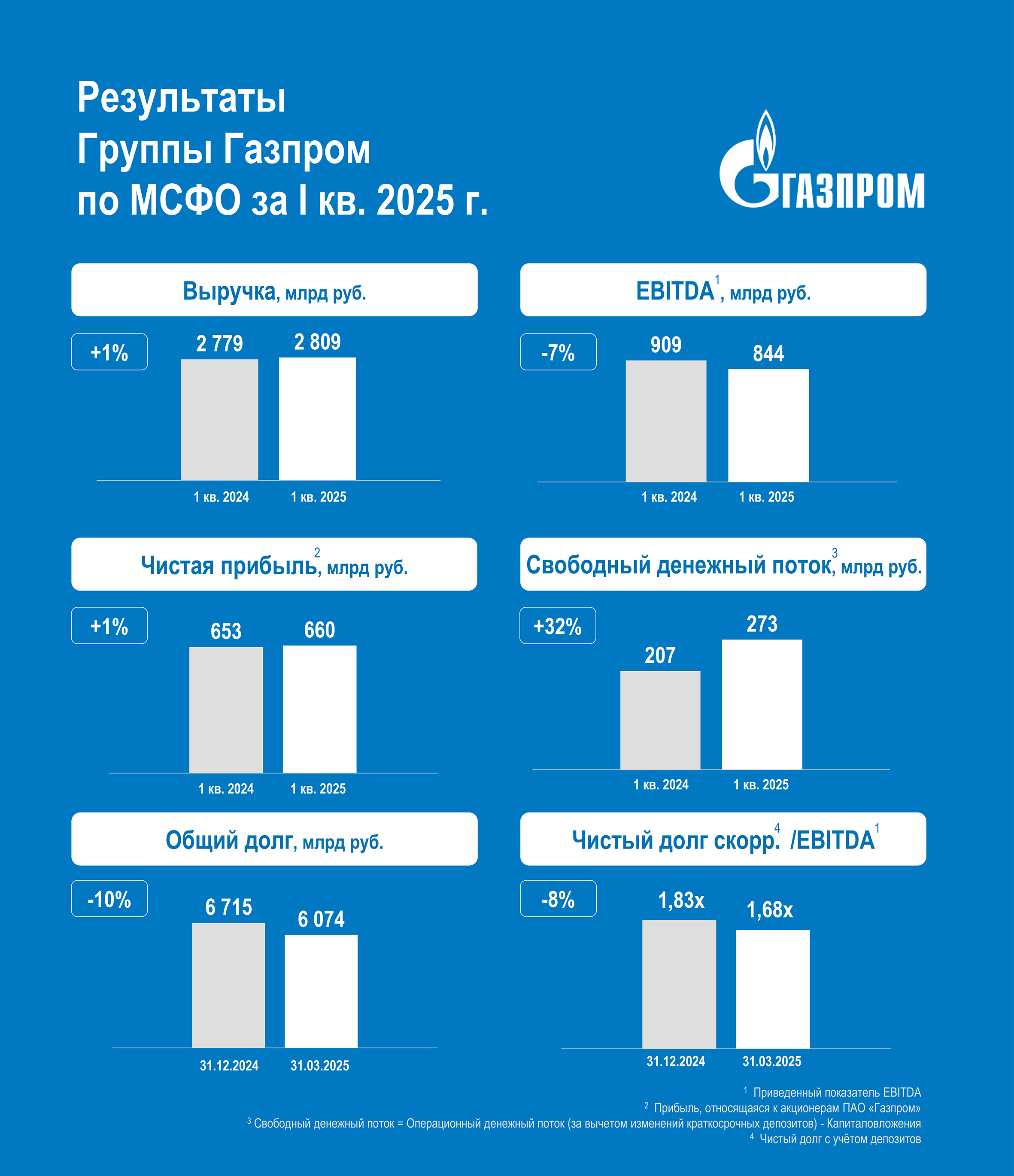 Ukupni prihod kompanije porastao je, u odnosu na isto tromesečje 2024.godine, za 1% na 2809 milijardi rubalja što je prema trenutnom kursu ravno iznosu od 31,5 milijardi evra.